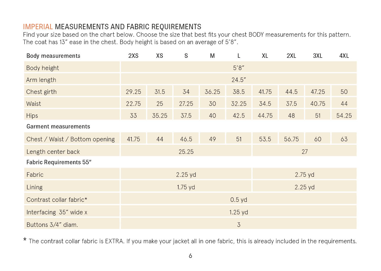 The Car Coat works beautifully in medium to heavyweight woven fabrics such as wool, boiled wool, tweed, jacquard, denim, or heavy cotton. Select a fabric with sufficient structure to maintain the jacket’s shape.