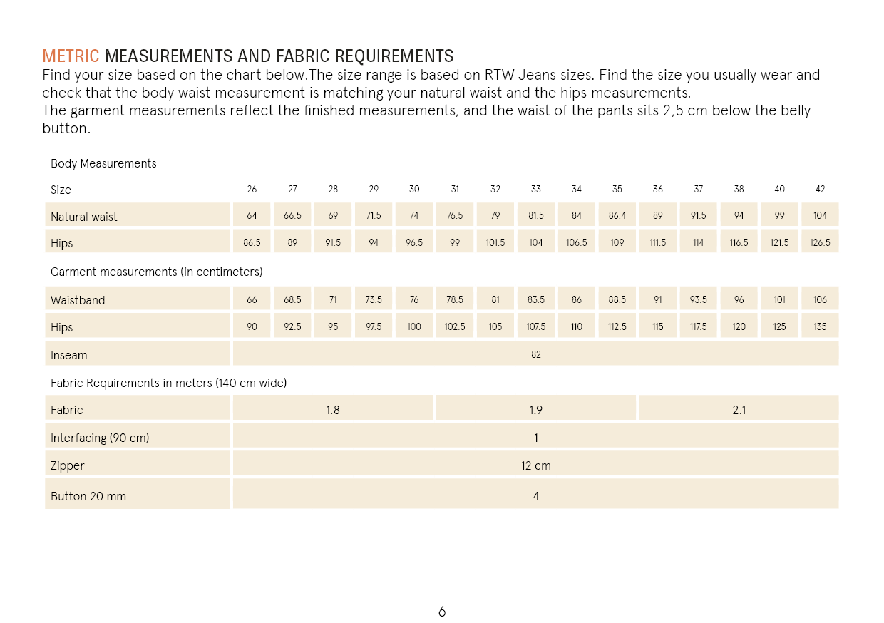 Flip through the images to find fabric requirements and measurements for the Cargo Pants sewing pattern.