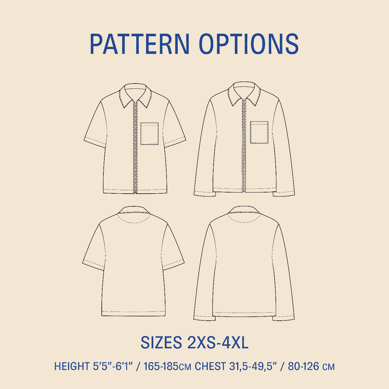 Men's Zip Shirt Sewing Pattern includes