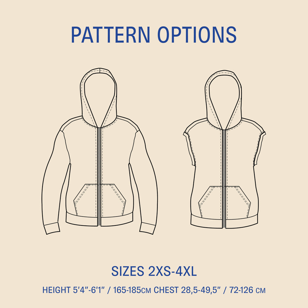 Zipper Hoodie Sewing Pattern - Unisex